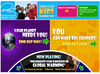 Click on the image to the right to go to the Energy Star Kids website. Use the green arrows to turn the selector at the bottom to select the "Quickest Ever Slideshow on Global Warming".
