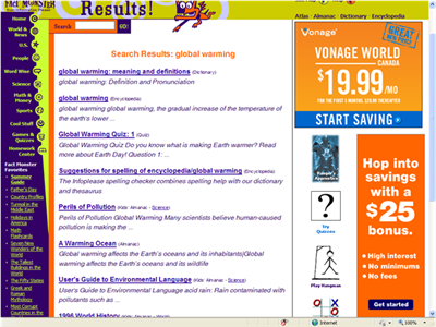 Fact Monster: Look around this site to find great definitions of key terms and some maty data related to global warming.